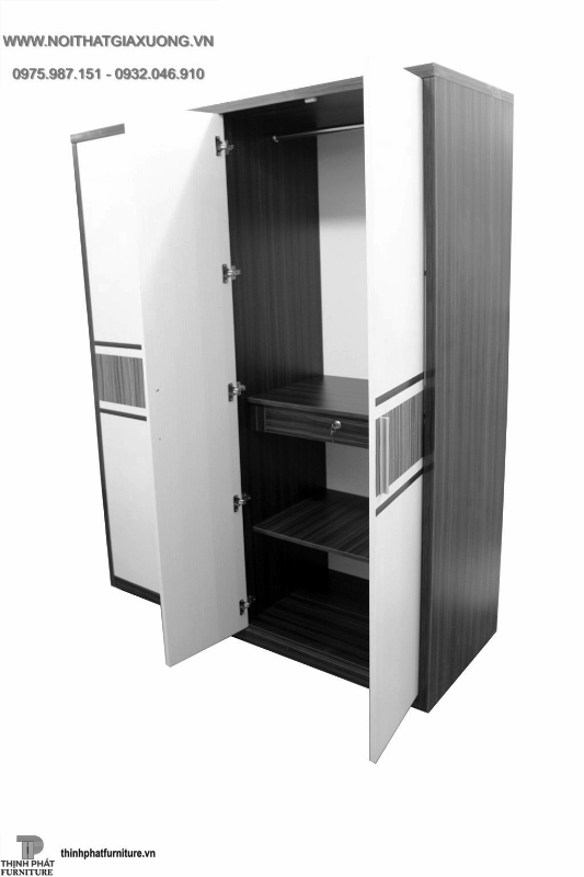Vật liệu: gỗ công nghiệp MDF phủ Melamine nhập khẩu Malaysia,, cạnh dán chỉ PVC